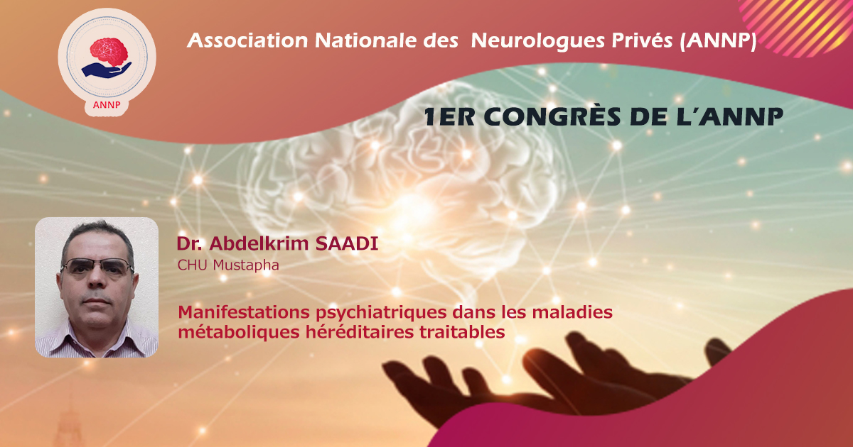 Le Jeudi 30 septembre 2021, s’est déroulé le 01 Congrès en ligne par webinaire, organisé par l’Association Nationale des Neurologues Privés ANNP. Le Congrès avait pour thème : Les manifestations Neurologiques à expression psychiatrique, en présentant des cas cliniques.